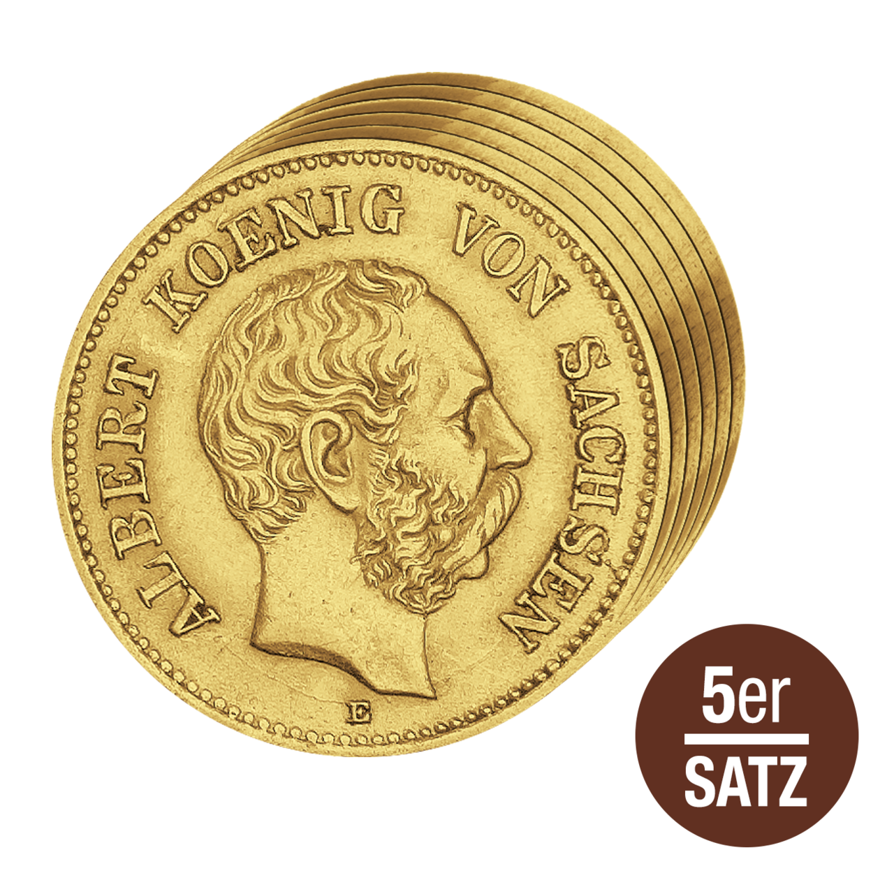 Produktinformationen "Königreich Sachsen, 5-20 Mark, Gold-Satz König Albert (J.260-264) 5 Münzen - Kaiserreich Gold"