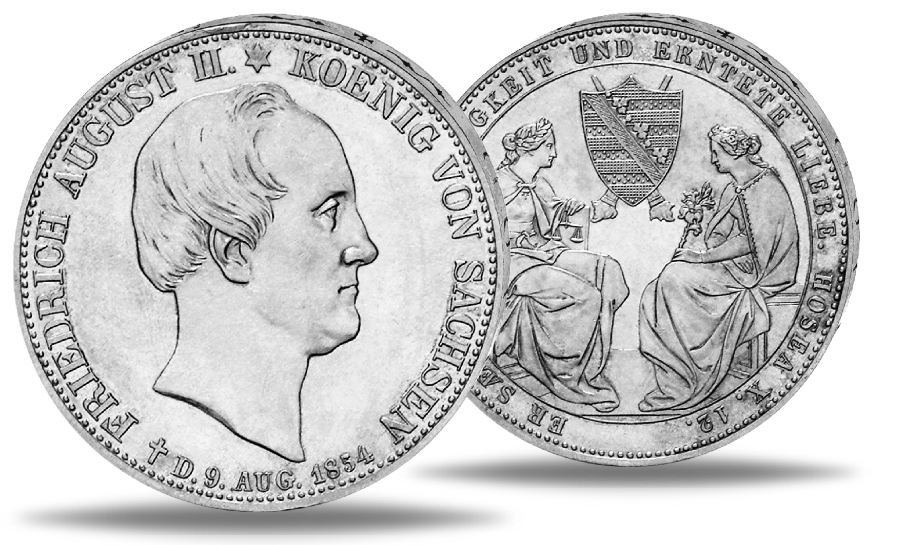 Königreich Sachsen, Doppeltaler 1854 (Thun 331), König Friedrich August II., auf seinen Tod - Silber
