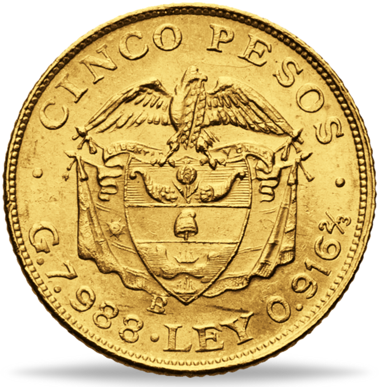 Produktinformationen "Kolumbien, 5 Peso Bolivar 1919-1924 - Gold"