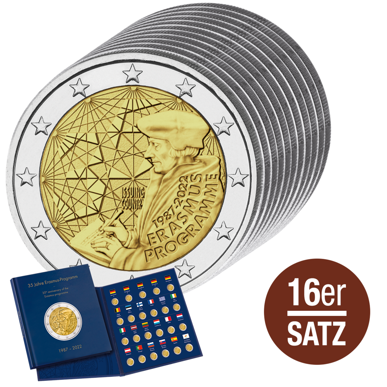 Komplettsatz 2 Euro-Gemeinschaftsausgabe „Erasmus“, 16x Münzen, 2022, bfr.