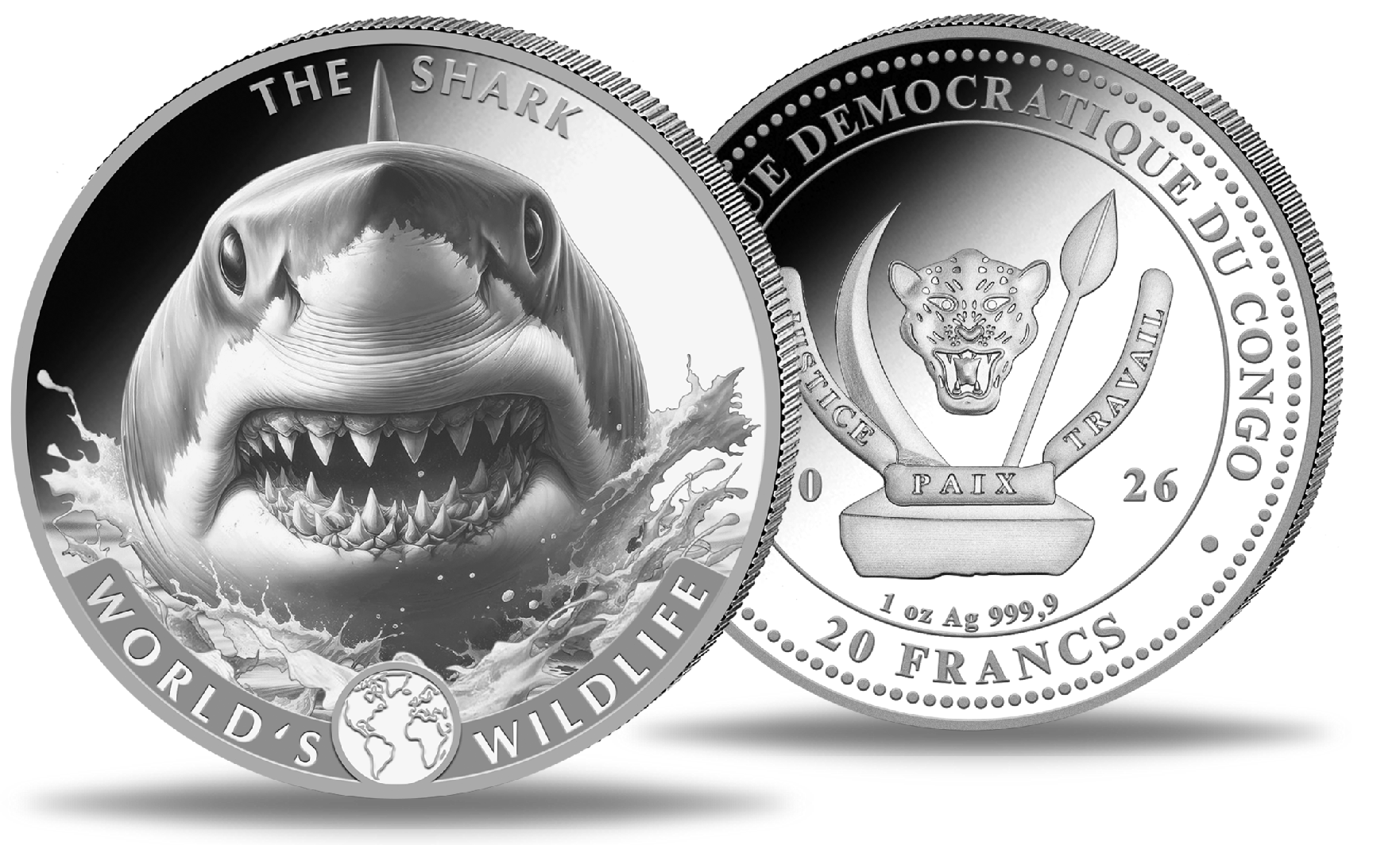 Kongo 20 Francs Hai, World´s Wildlife 1 Unze Silber 2026