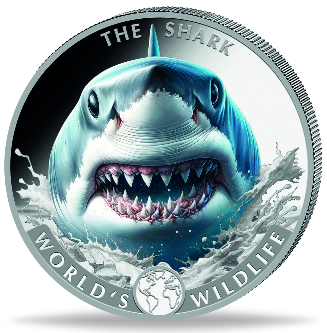 Produktinformationen "Kongo 20 Francs Hai, World´s Wildlife 1 Unze Silber mit Farbapplikation 2026"