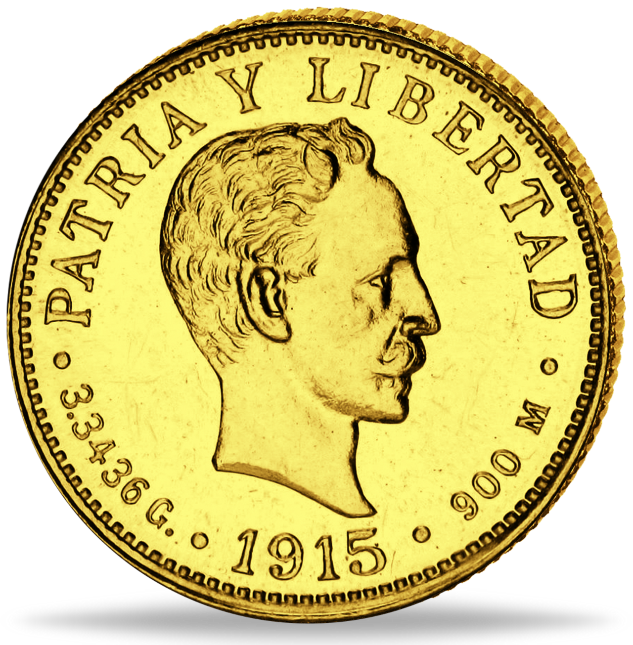 Kuba, 5 Pesos 1915-1916, Jose Marti - Gold