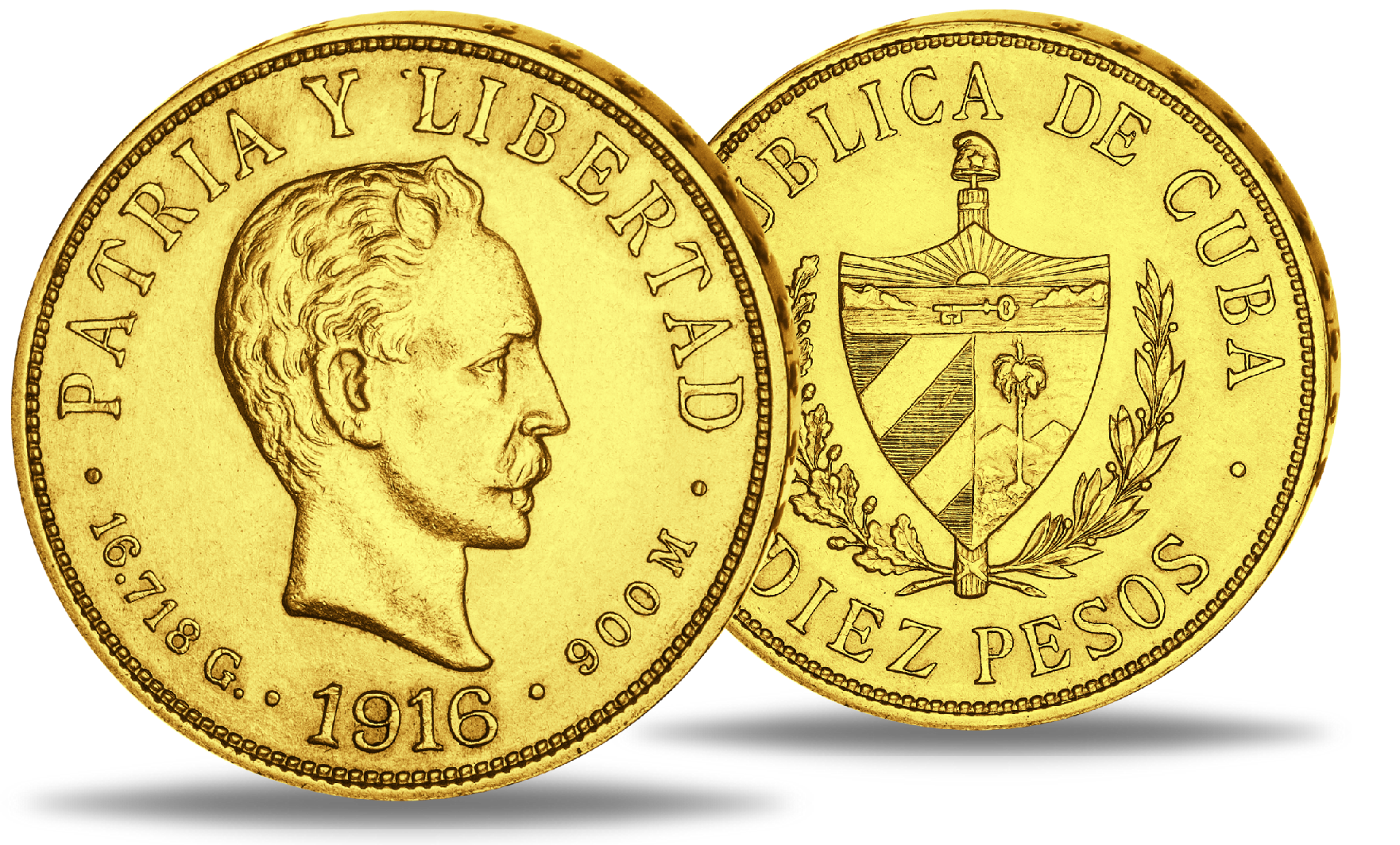Kuba, 10 Pesos 1915-1916, Jose Marti - Gold
