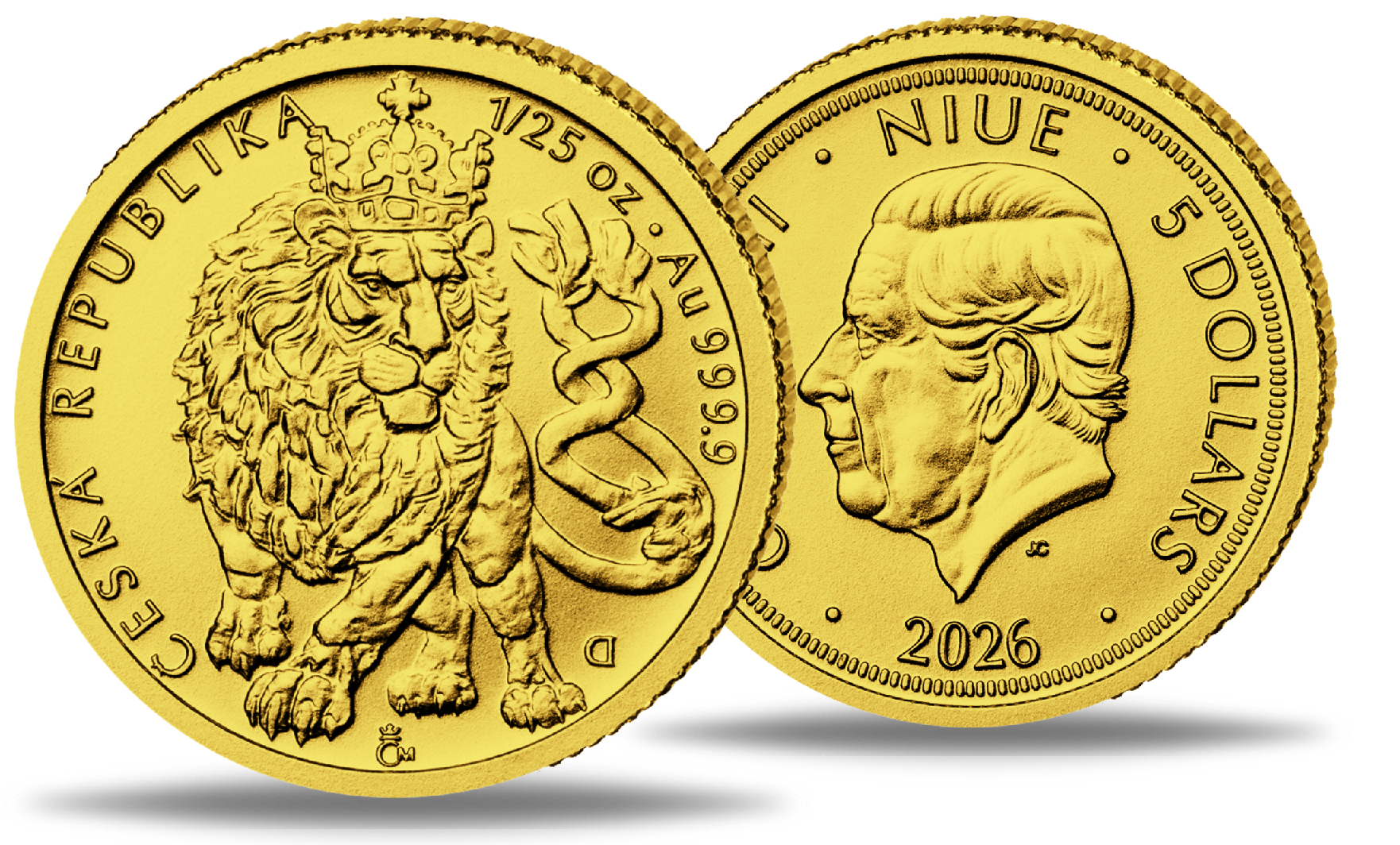 Niue, 5 Dollar Tschechischer Löwe Gold 2026