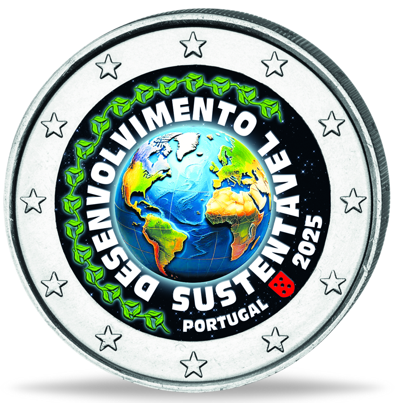 Das Münzbild zeigt den Erdball umgeben von 17 Blatt-Paaren, diese symbolisieren die 17 Ziele der Agenda 2030 für nachhaltige Entwicklung !