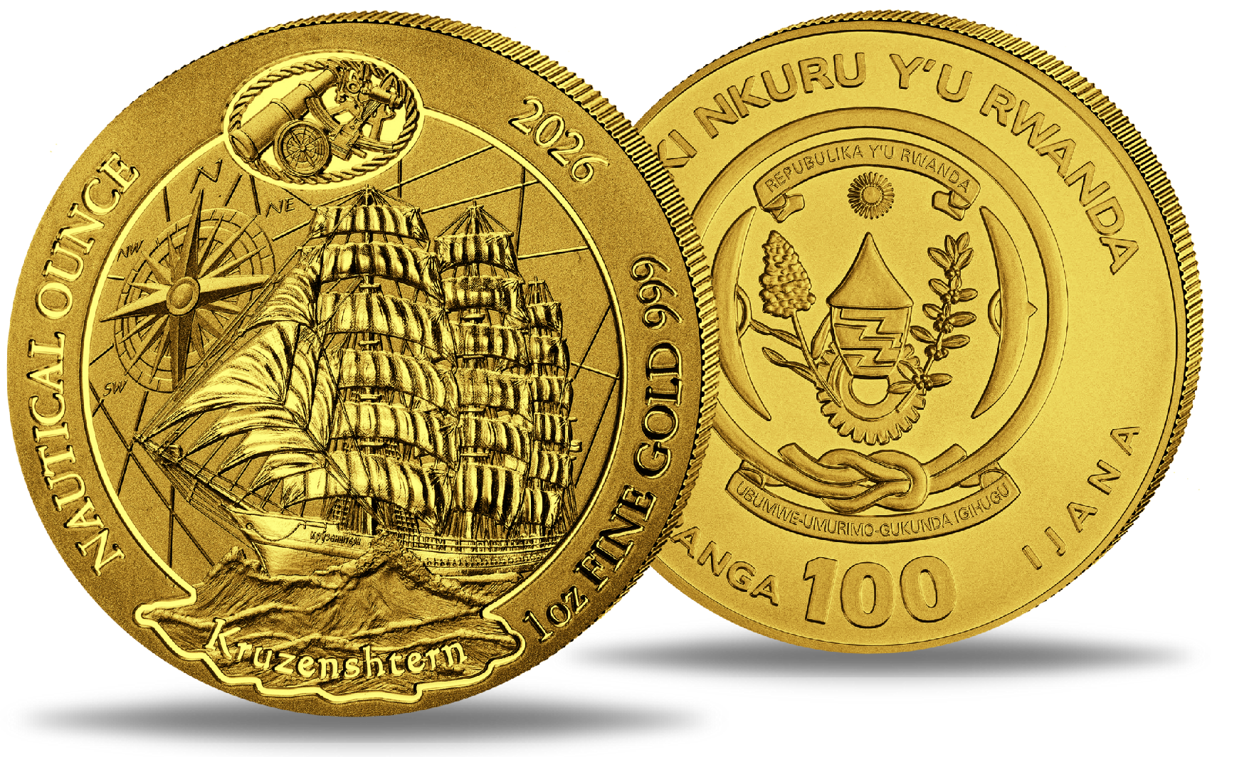 Ruanda, 100 Francs Kruzenshtern, Nautical Ounce, 1 oz Gold, 2026