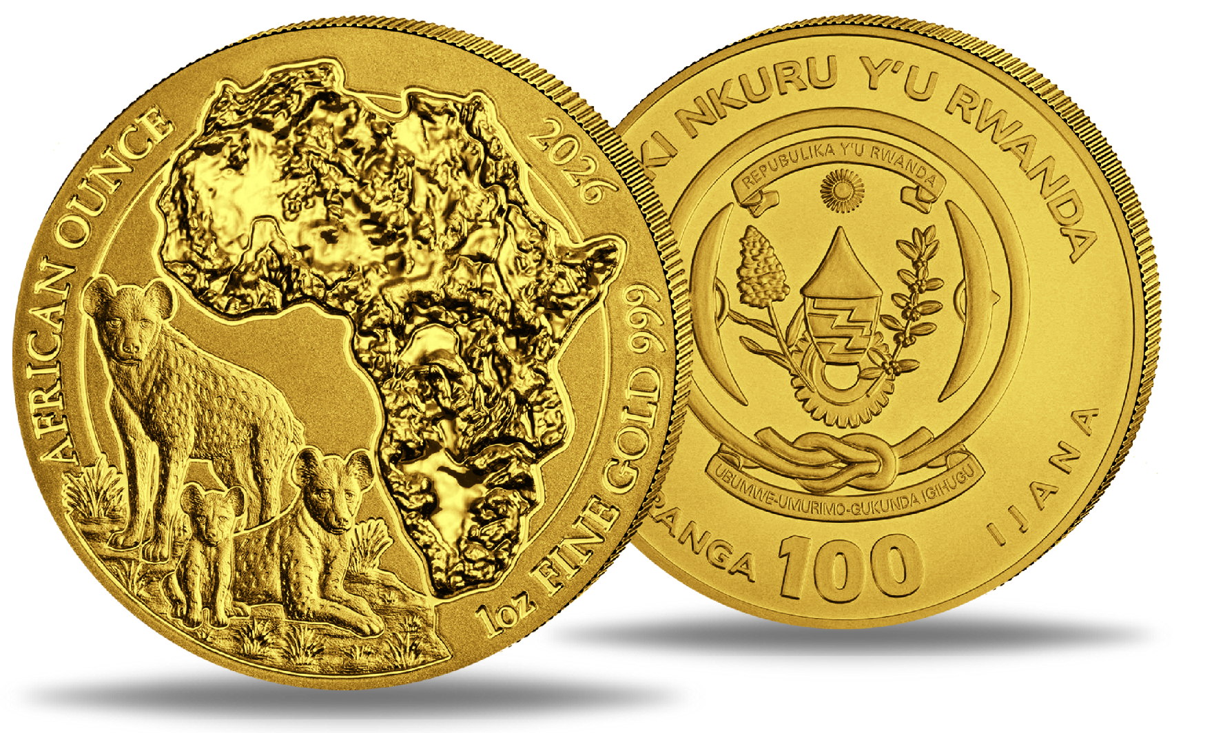 Produktinformationen "Ruanda, 100 Ruanda-Francs Tüpfelhyäne African Ounce 2026 1/12 Unze Gold"