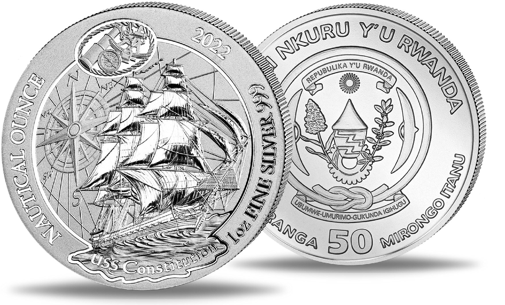 Produktinformationen "Ruanda 50 RWF USS Constitution 1 Unze Silber 2022"