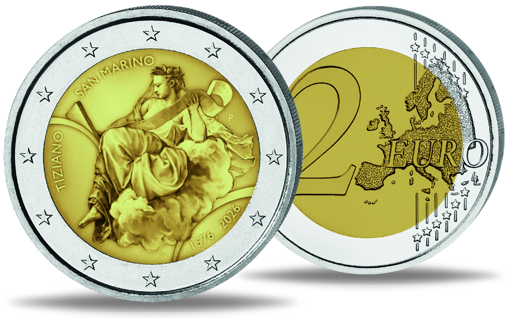 San Marino, 2 Euro 450. Todestag Tizian, 2026, bfr. in Coincard