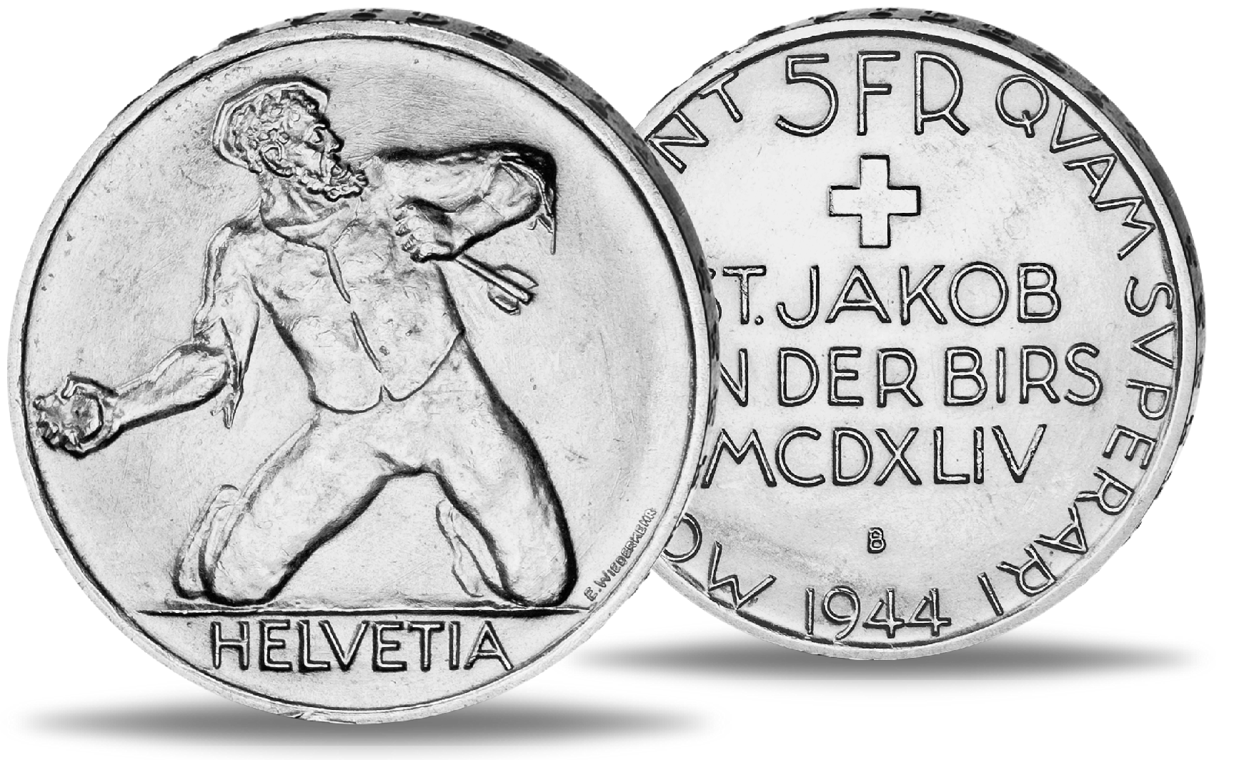 Produktinformationen "Schweiz, 5 Schweizer Franken 1944, St. Jacob - Silber"