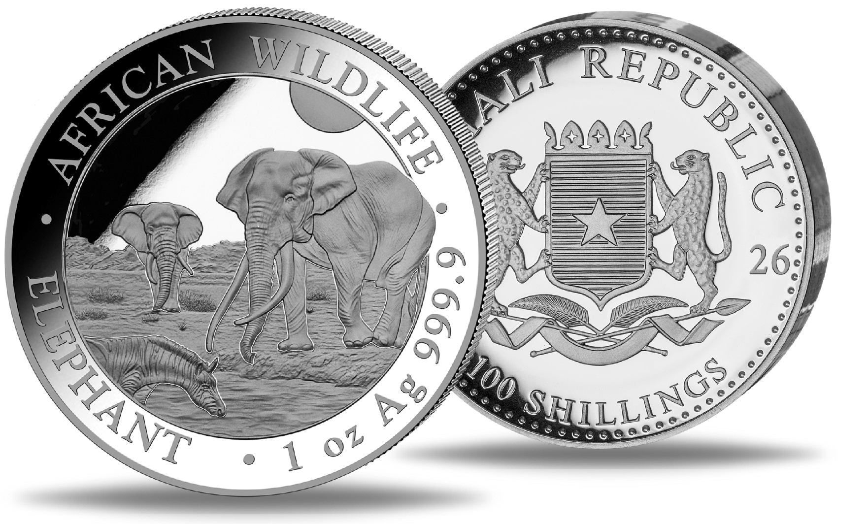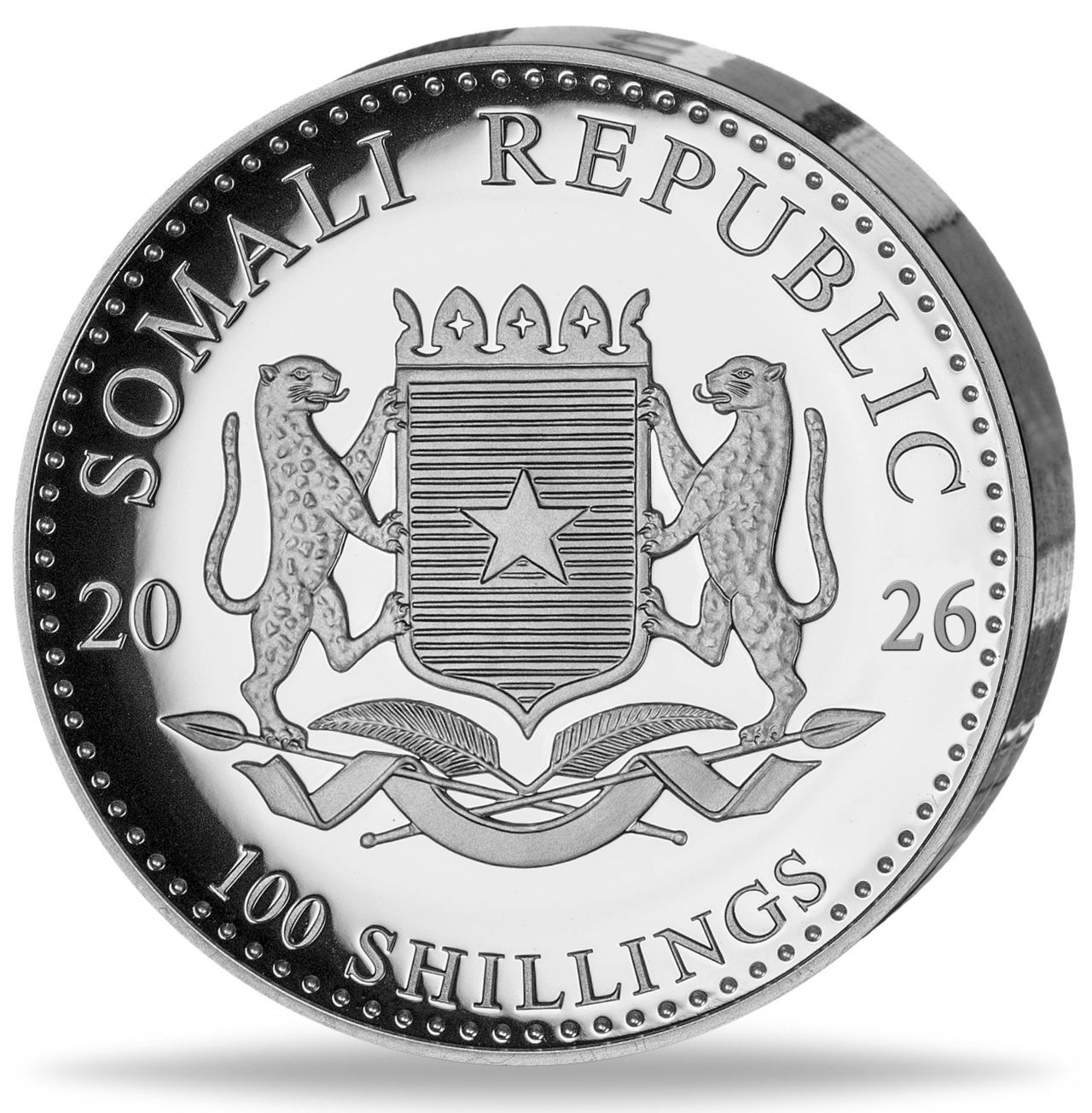 Somalia, 100 Schilling 'Elefant', High Relief & Polierte Platte, 1 Unze Silber - 2026