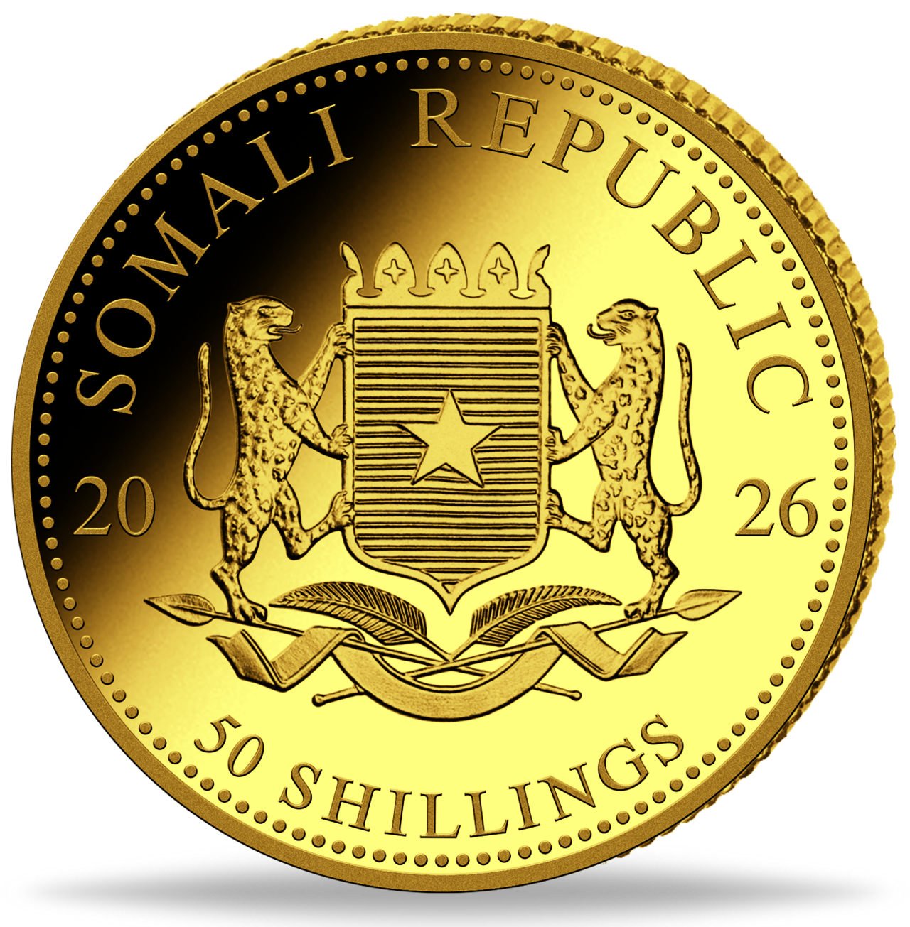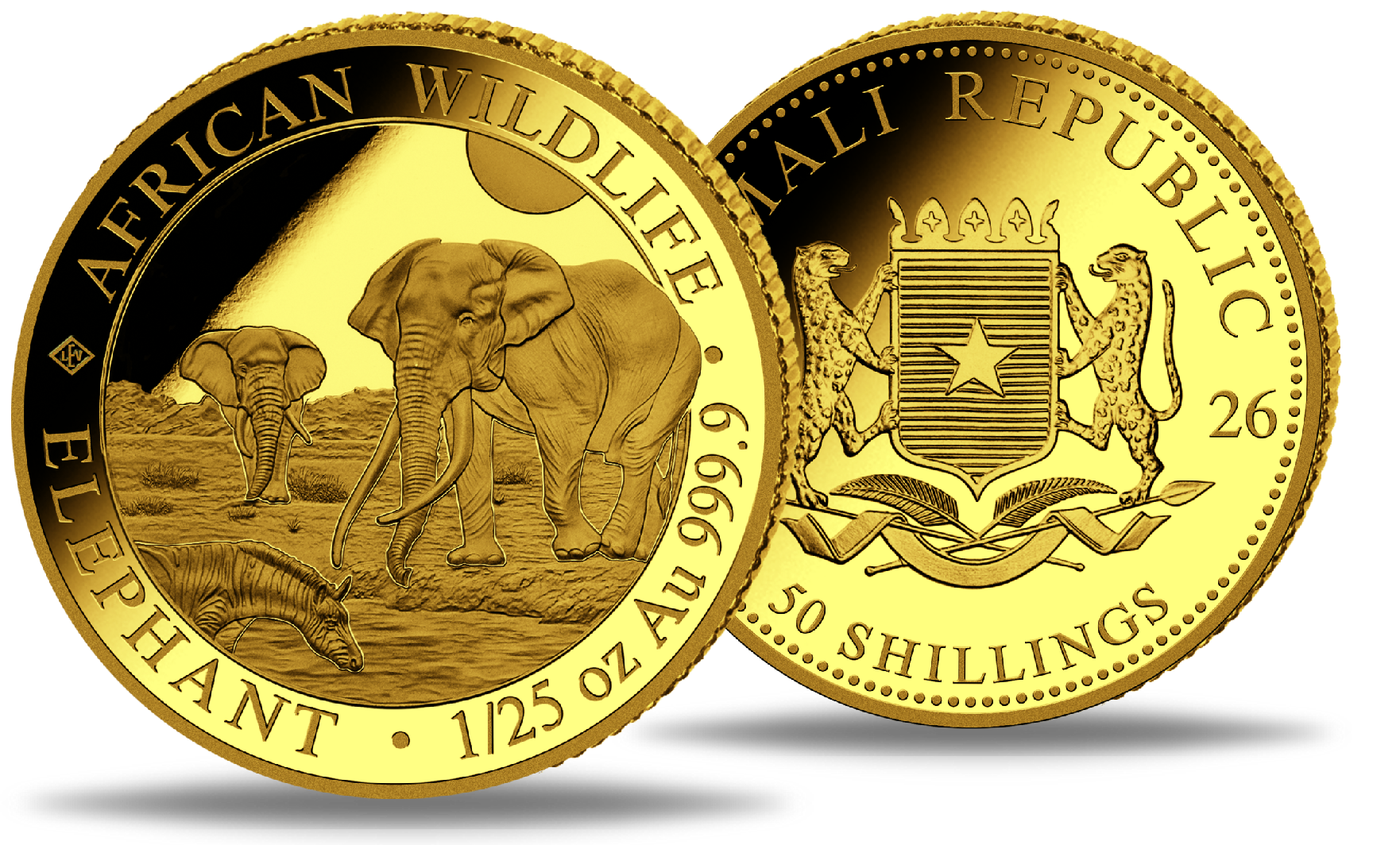 Somalia, 20 Shilling Elefant African Wildlife, 1/25 Unze Gold, PP, 2026