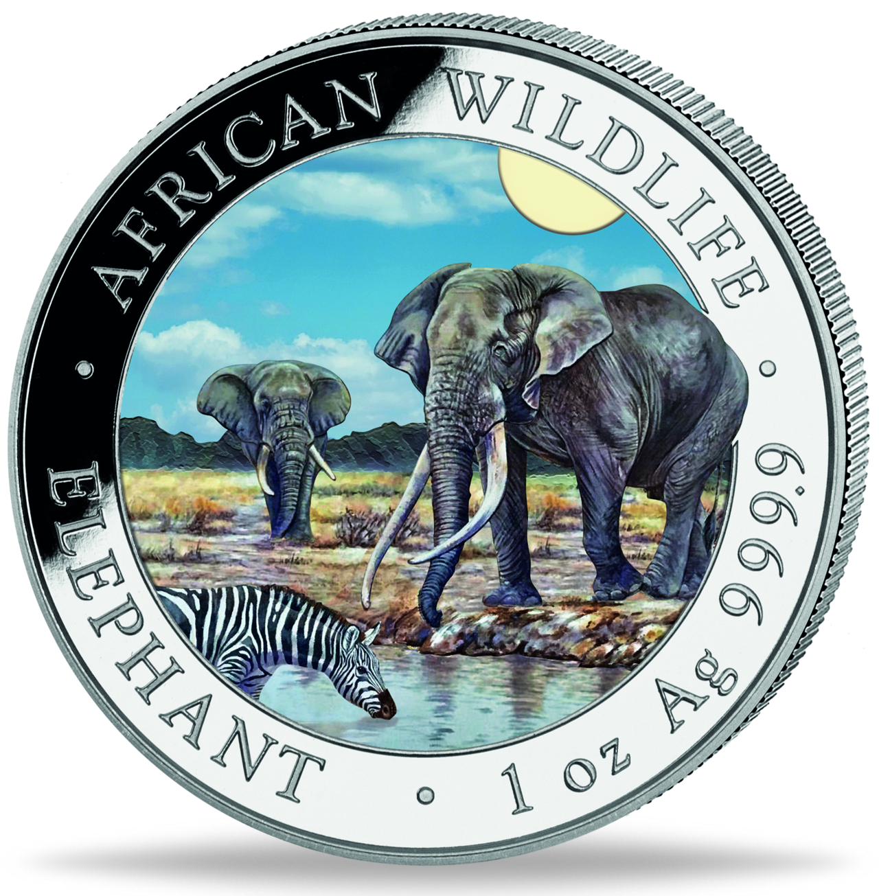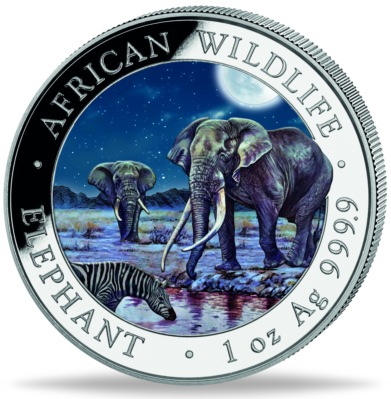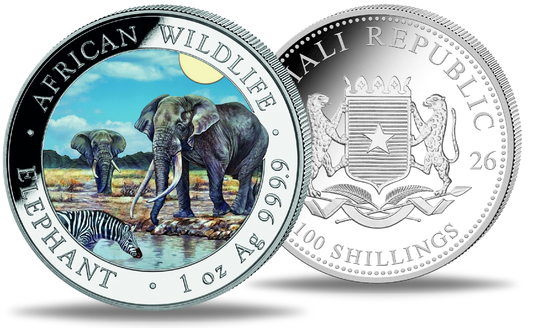Somalia, 2x 100 Shilling 'Elefant', Satz Tag & Nacht, Silber mit Farbapplikation - 2026