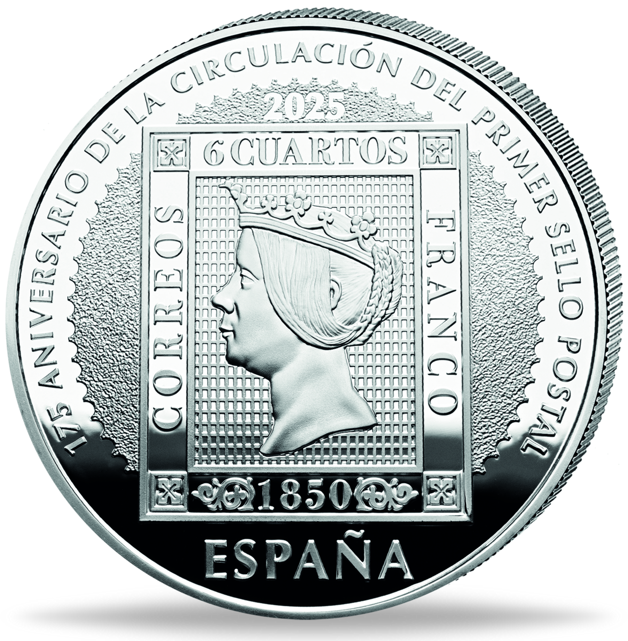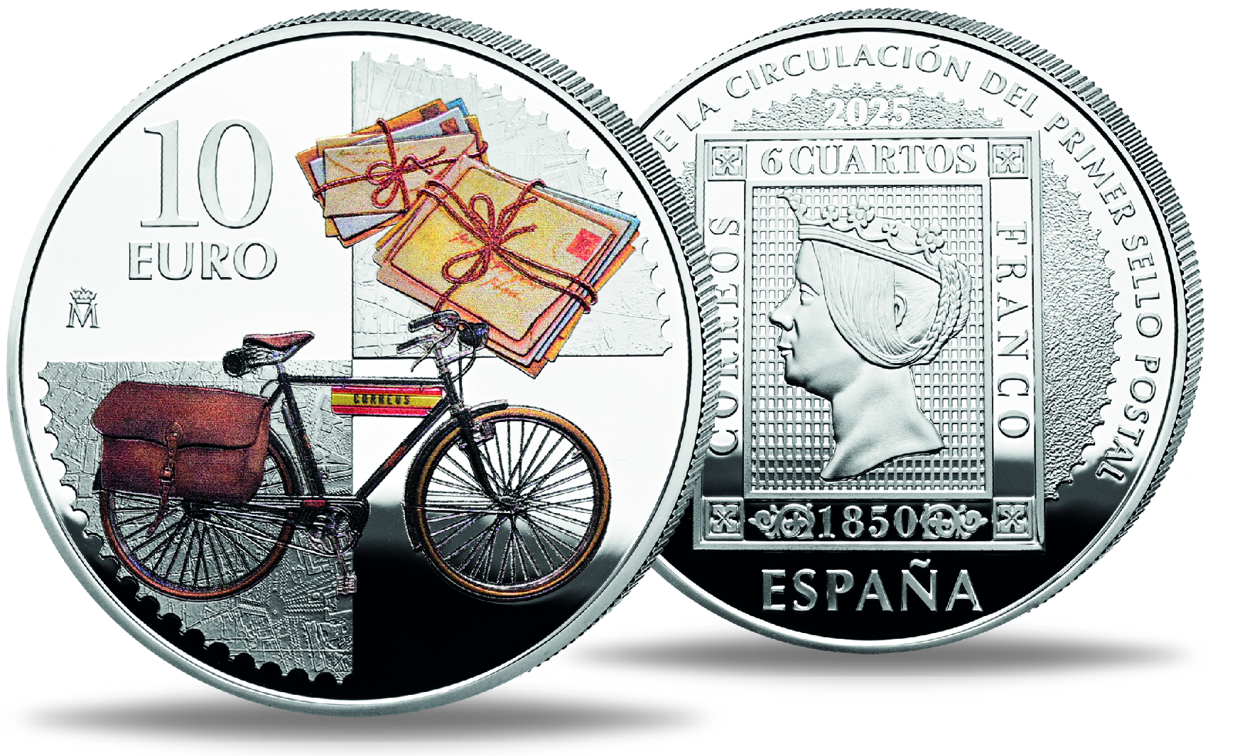 Produktinformationen "Spanien, 10 Euro 175. Geburtstag der 1. Briefmarke, 2025, Silber, mit Farbapplikation"