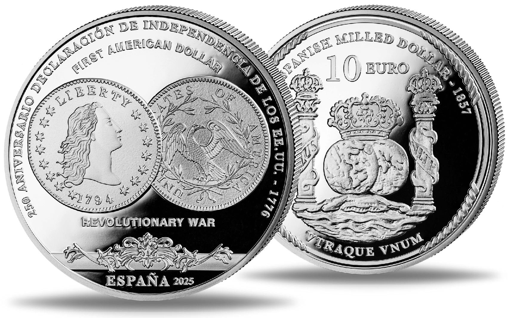 Produktinformationen "Spanien, 10 Euro Erster US-Dollar, 2025, Silber, PP"