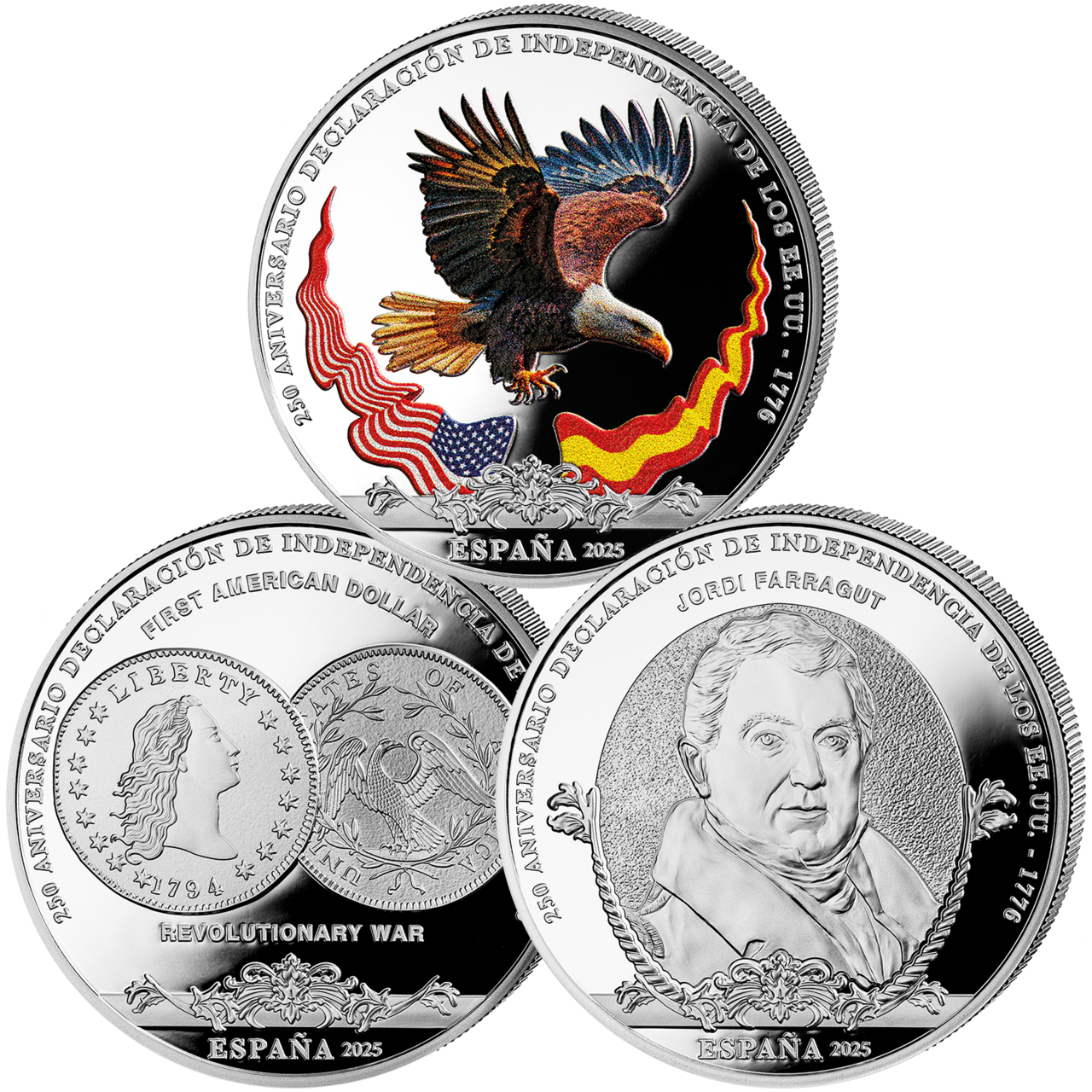 Spanien, 3x 10 Euro 250 Jahre USA-Unabhängigkeitskrieg, 2025, Silber, PP,