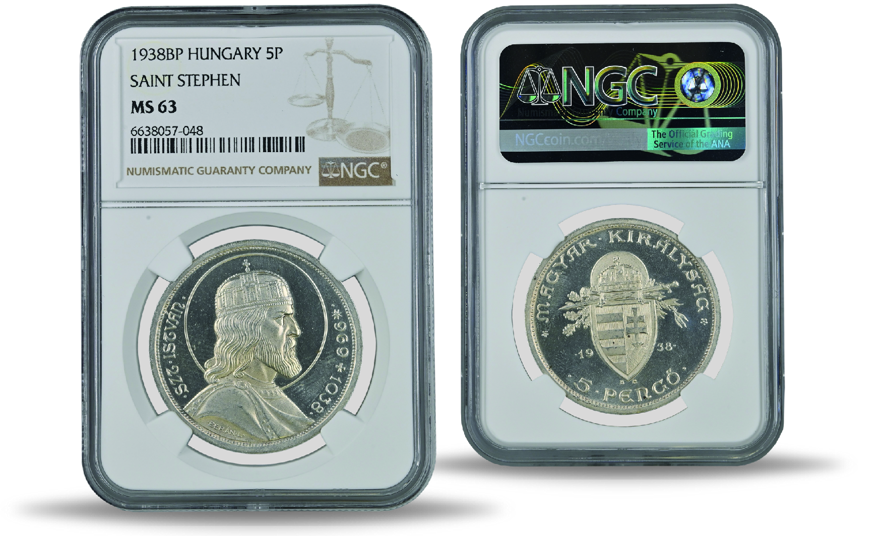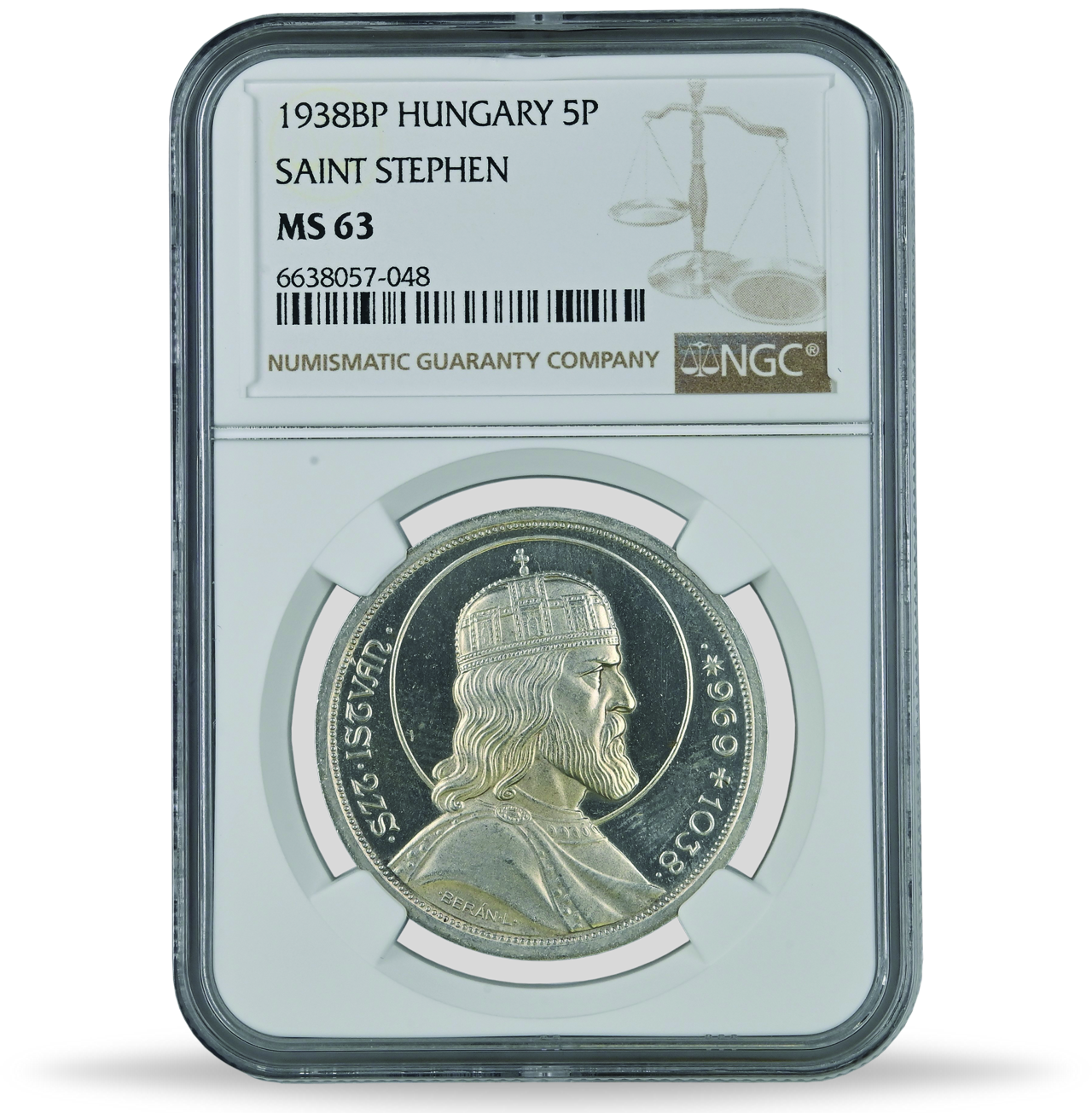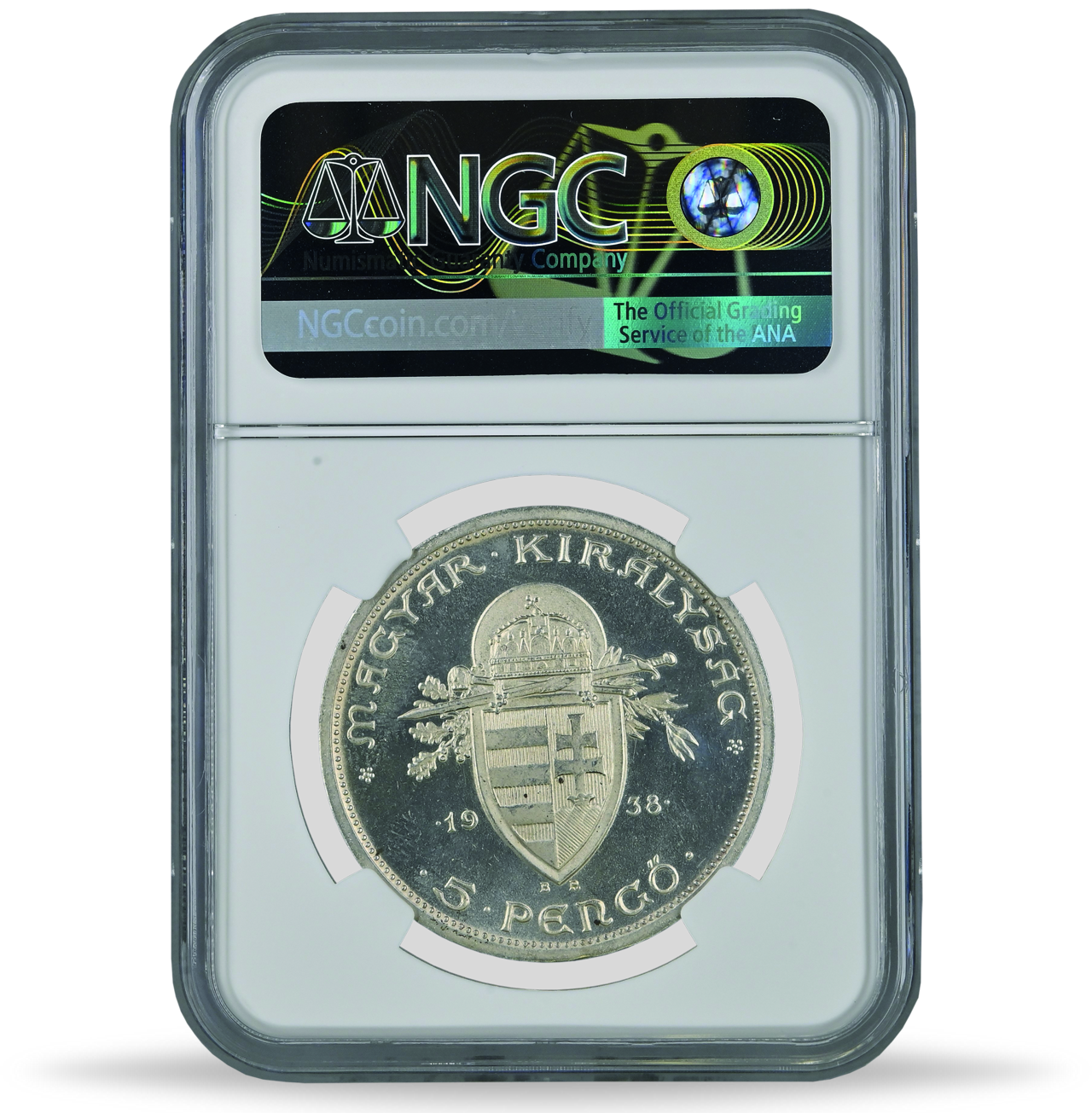 Ungarn, 5 Pengo 1938, Heiliger Stefan, NGC MS-63 - Silber