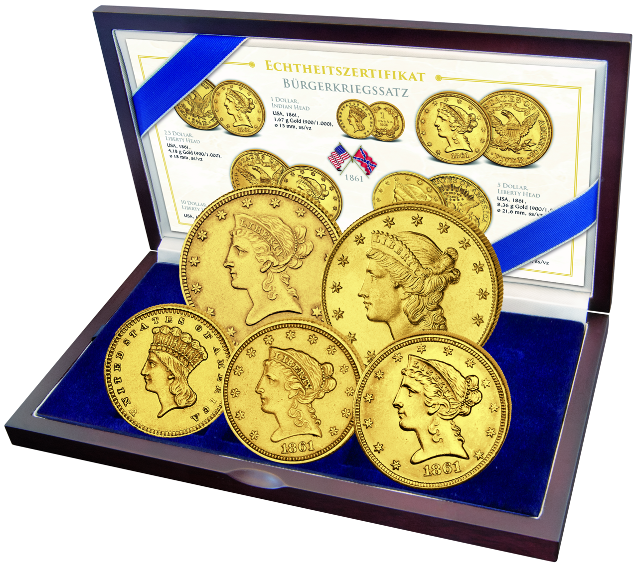 Äußerst seltener Bürgerkriegs-Goldsatz aus dem ersten Bürgerkriegsjahr 1861 !