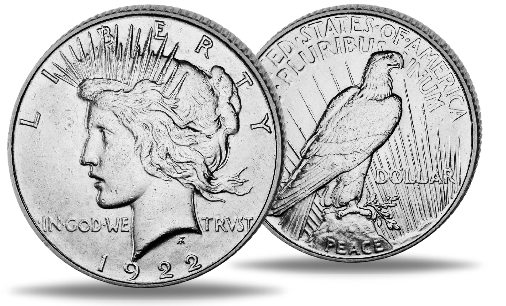 Beide Münzen in einem Satz: 1 $ Morgan und 1 $ Peace !