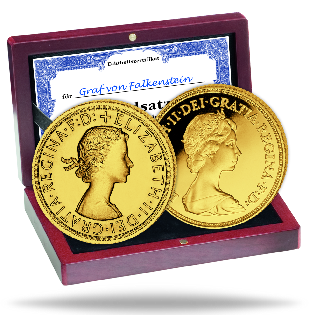 Produktinformationen "Vereinigtes Königreich, Sovereign-Gold-Gedenksatz Elizabeth II. (2 Münzen) - Gold"