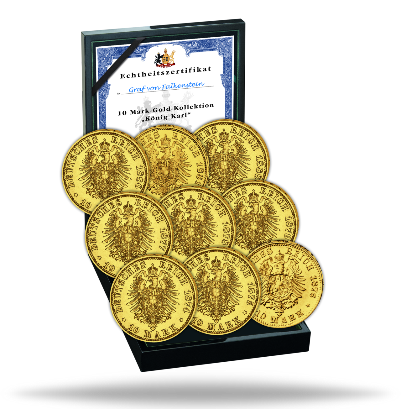 Württemberg, Komplett-Kollektion 9x 10 Mark 1874-1888 (J.292), König Karl - Kaiserreich Gold
